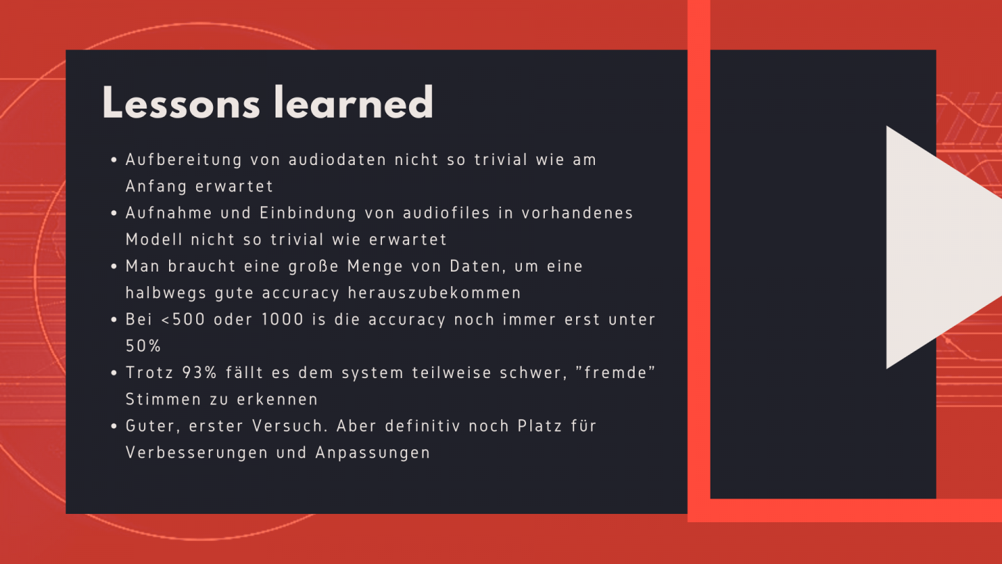 Präsentation unseres Machine Learning Subthemas - ein AI Spracherkennungsmodell. - FH Technikum Wien // Fach Change Management