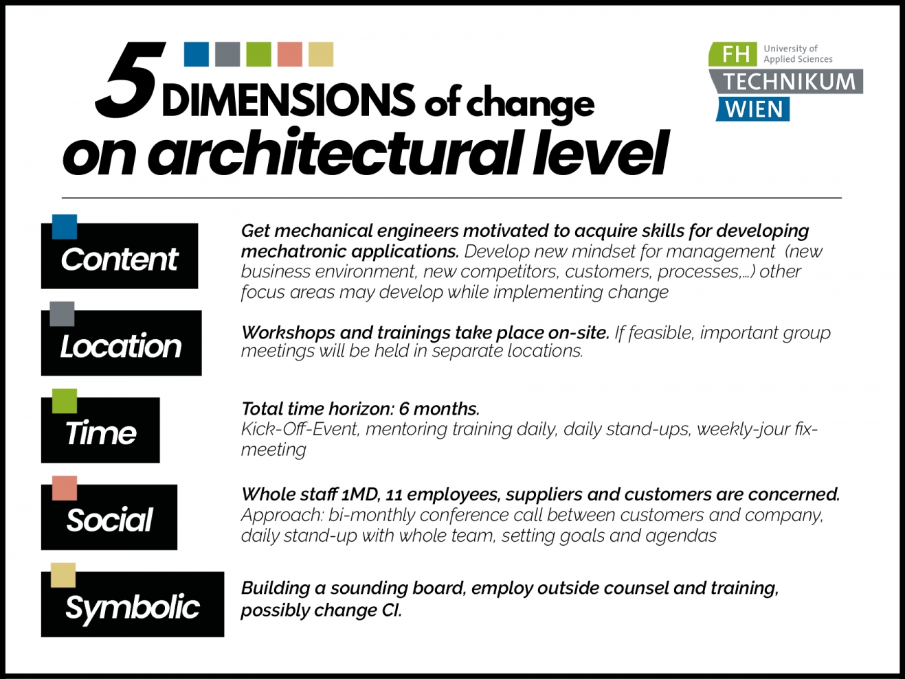 Praktisches Beispiel eines Change Projekts // Als Subjekt: Das Unternehmen eines Studienkollegen | meine Slides betreffen Change Architektur, Interventionsarten und Change-Prozess-Landkarte für die nächsten 6 Monate